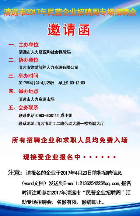 清遠(yuǎn)市2017年“民營企業(yè)招聘周”活動專場招聘會