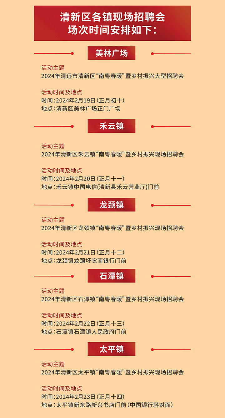 招聘會預告|2024年清遠市清新區(qū)“南粵春暖”暨鄉(xiāng)村振興大型招聘會
